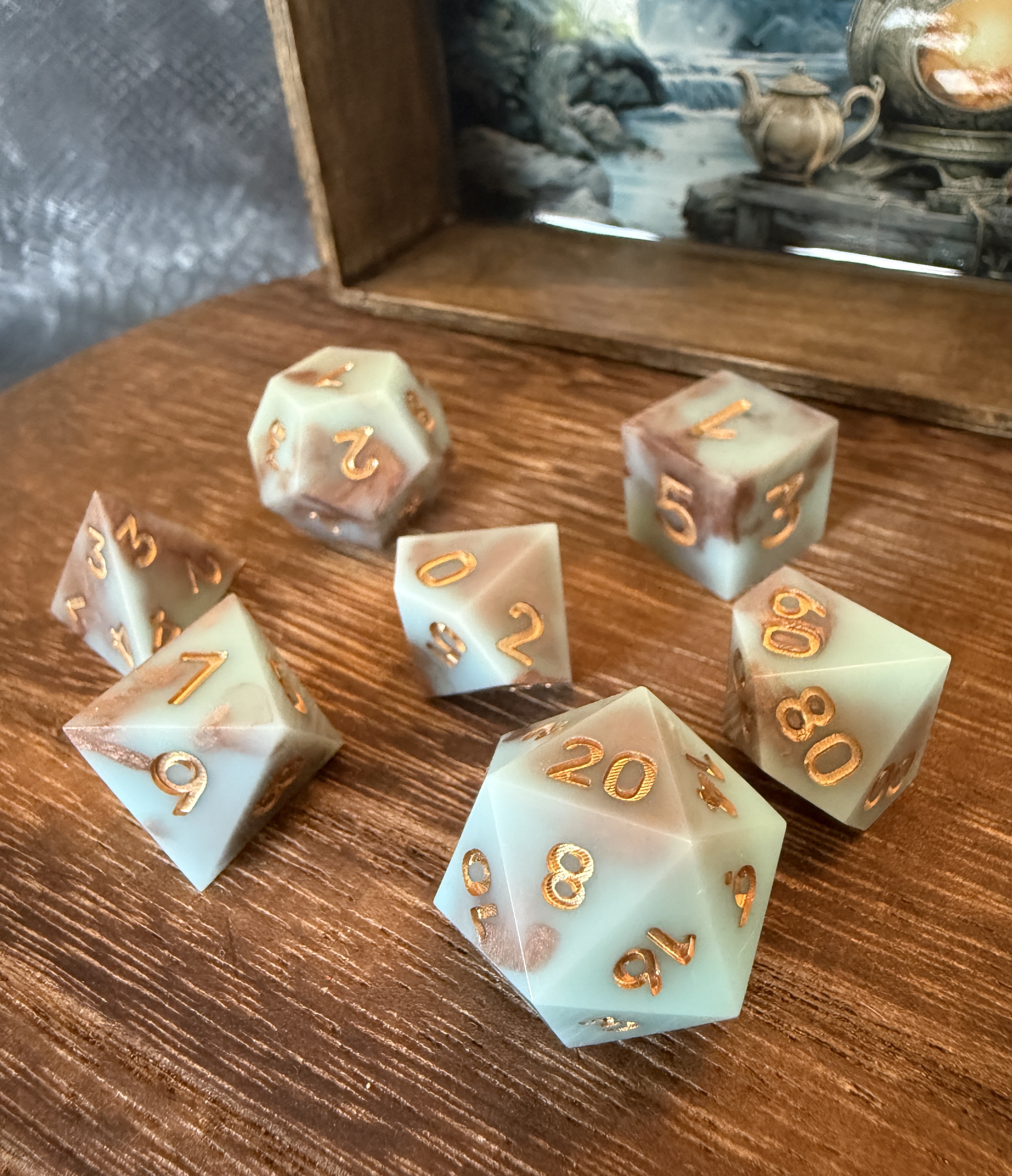 Perfect for Dungeons & Dragons, Pathfinder, and other role-playing games, these dice bring both beauty and precision to your adventures. Embrace the magic and make every roll unforgettable with these stunning dice.