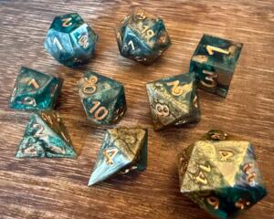 Copper and sea green swirled, sharp edge dice, hand poured re...